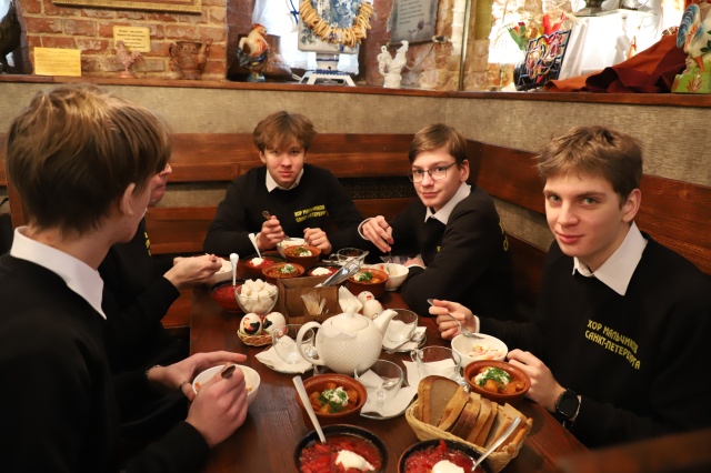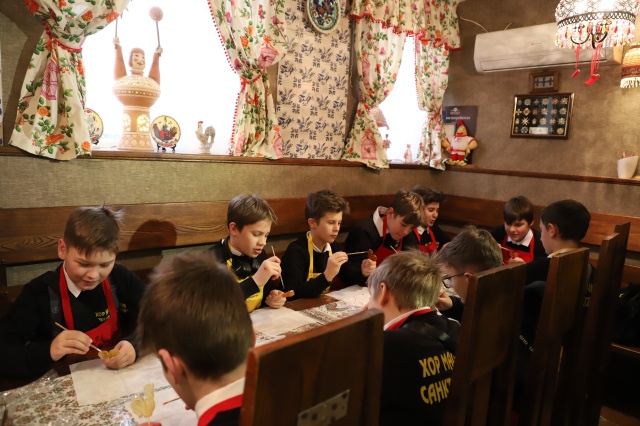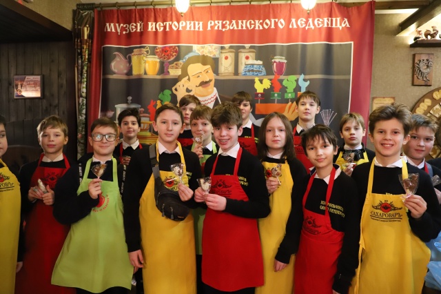 Весь день мы посвятили знакомству с городом. В Рязани хор впервые, и поэтому всё нам здесь было интересно. Первое, с чем познакомились дети сегодня — Музей леденца. Если вы когда-нибудь захотите посетить Рязань, обязательно начните знакомство с городом с этого замечательного музея! Здесь хор провёл два часа. За это время мы узнали удивительную историю появления сахара в России, рецепт его приготовления, нам рассказали о приключениях, которые были связаны с его производством, и об открытиях, сделанных в разных странах мира. Почти в каждом музейном зале во время экскурсии нам обязательно предлагали что-нибудь отведать: то тростниковый сахар, изготовленный по старинному рецепту, то сахарный сироп, то сладкую настойку, ну и, конечно же, венцом всему — приготовленный на наших глазах леденец — рязанский петушок! Однако, самое интересное ждало нас по окончании экскурсии! Каждый мальчик получил уникальную возможность превратить обыкновенный леденец в царский, расписав его с помощью кисти белым и тёмным шоколадом. А затем, в уютном кафе-чайной нас ждал по-настоящему царский обед: с закуской, горячими первым и вторым блюдами и знаменитыми рязанскими блинами-каравайцами!